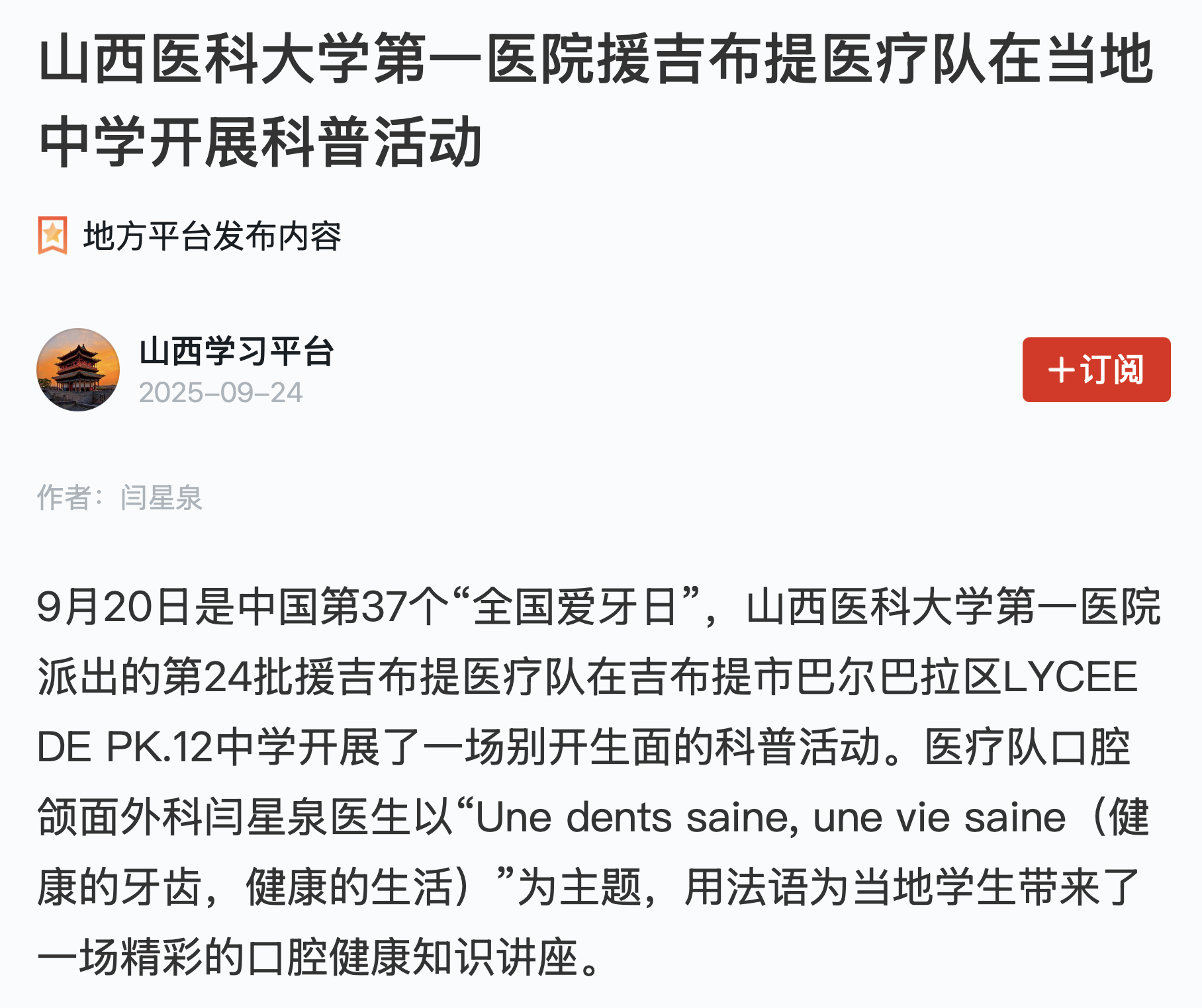 9月9日,《中国教育报》“教改风采”版刊发我校党委书记王军、校长解军的署名文章《推进“大思政课”建设 深化医德教育改革——山西医科大学“大思政—1345”“新医德”育人模式的探索与实践》。文章从“根植红色基因 百年文脉筑牢学校医德教育之魂”“紧扣时代之问 三阶段迭代升级学校医德教育模式”“深化系统创新 夯实学校医德教育核心架构”“坚持以生为本 打造‘五位一体’医德教育矩阵”“直面现实之需 问题导向破解学校...