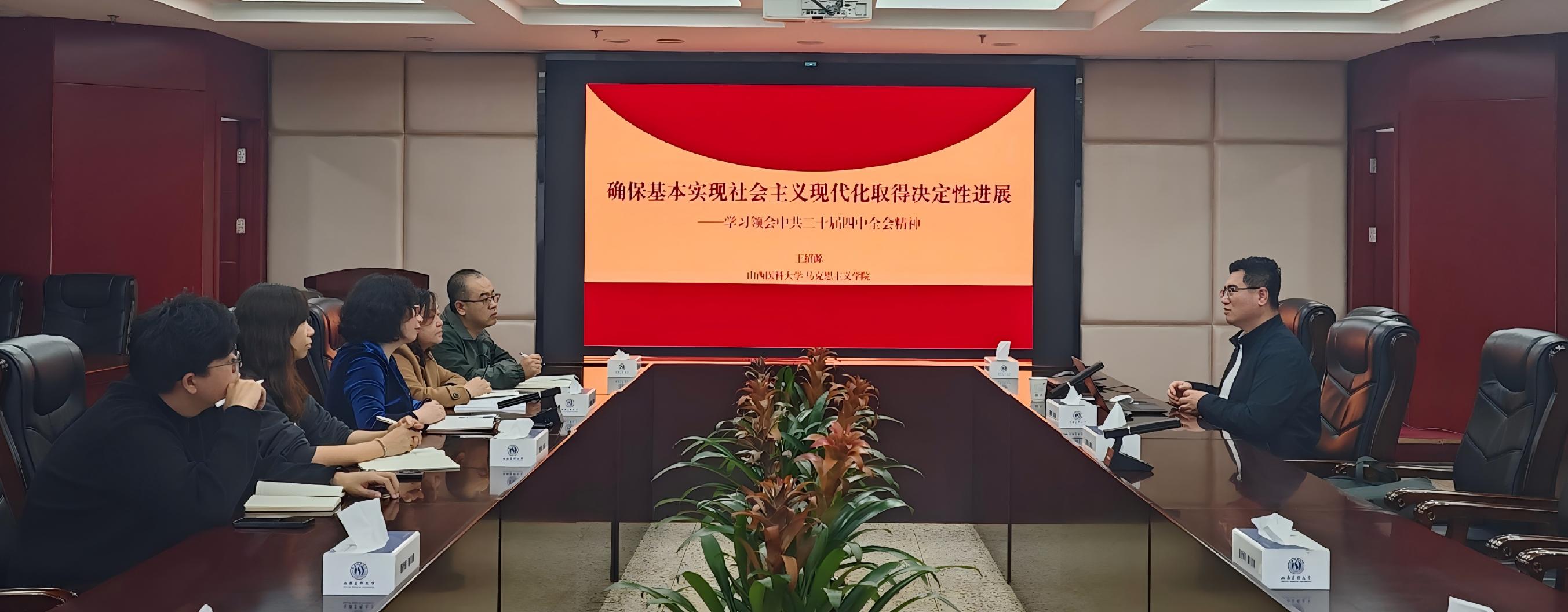 2025年11月7日下午,山西医科大学档案馆深入学习贯彻党的二十届四中全会精神专题宣讲会在教学办公楼5楼会议室举行。本次宣讲会由档案馆馆长牛乐主持,特邀马克思主义学院院长王绍源教授担任主讲,档案馆全体工作人员参加学习。