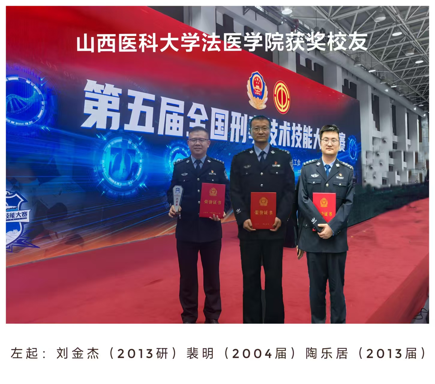 2025年9月25日,备受瞩目的第五届全国刑事技术技能大赛在兰州圆满落幕。作为我国法庭科学领域规格最高、专业性最强的赛事,本届大赛以 “全面融入实战、全面考核提升” 为主题,汇聚全国 32 支代表队、288 名顶尖选手,围绕法医、DNA、痕迹等 8 大专业展开巅峰对决。山西医科大学法医学子凭借扎实的专业功底、精准的实战能力与前沿的技术创新,在激烈角逐中脱颖而出,我院2004届校友裴明、2013届校友陶乐居获法医专业前十名,2013届研究生刘金杰获DNA专业前十名,充分彰显了山医法医教育的深厚底蕴与人才培养的卓越成效。