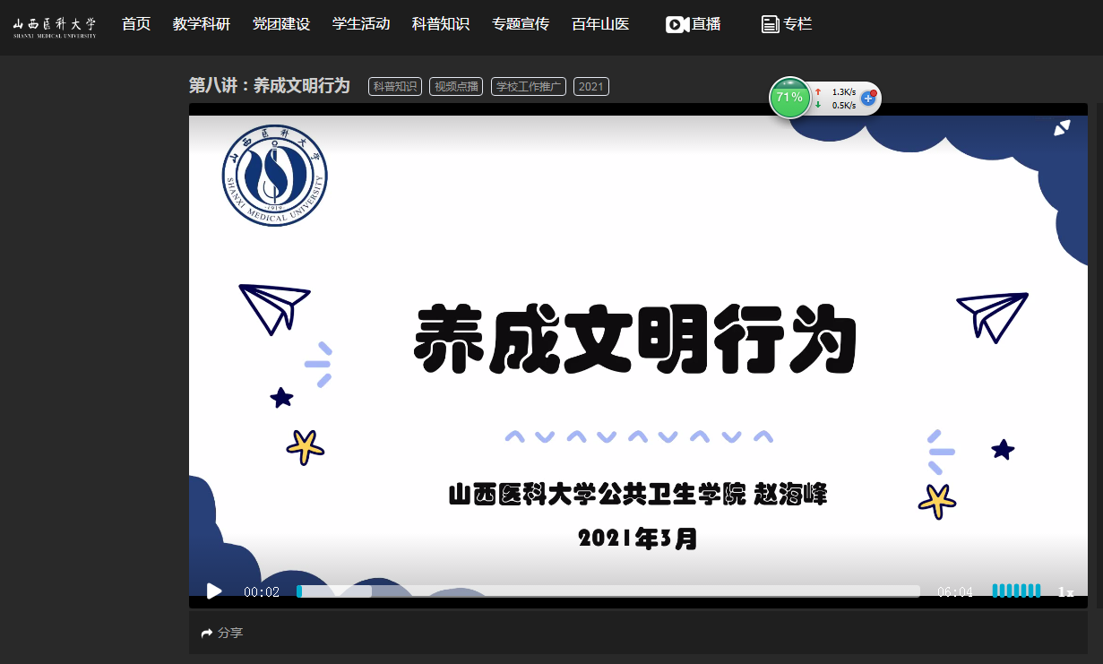 视频课程在学校网络和学习强国APP上线以来,受到全校师生和校外学生的广泛好评,为加强学校健康教育、提升学生健康素养,保障全校教学工作平稳有序开展作出了积极贡献。同时也激发了学院老师们广泛利用专业知识为社会服务的热情和动力。