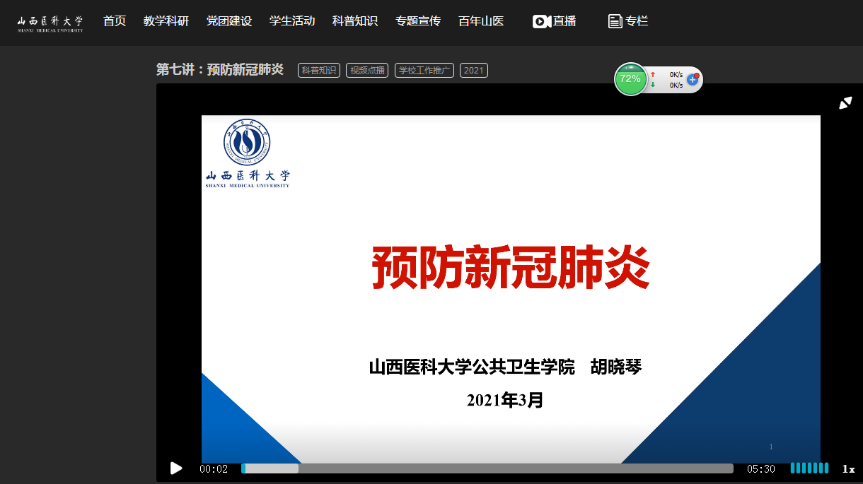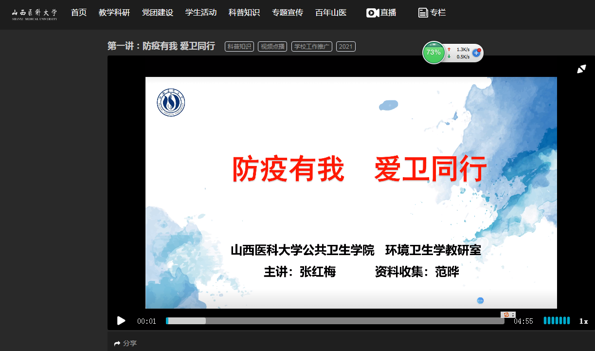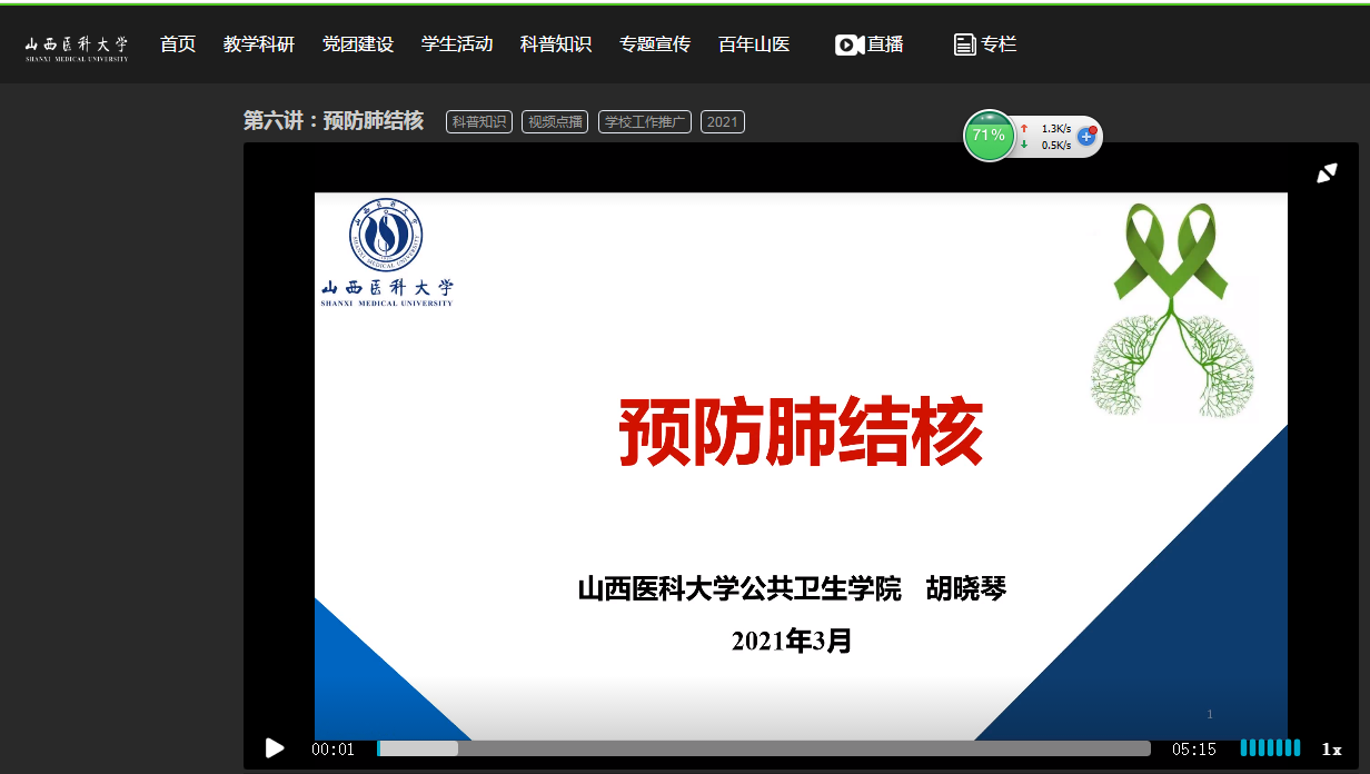 此次推出的系列视频课程,是学校按照省委教育工委2月24日全省教育系统疫情防控视频调度会精神,贯彻落实校党委部署要求,为保障春季师生健康安全专题制作的线上视频课程,我院赵海峰教授、张红梅教授、胡晓琴副教授、范晔博士等多位教师积极收集素材,精心准备,制作了“养成文明行为”、“防疫有我、爱卫同行”、“预防新冠肺炎”和“预防肺结核”等主题内容的教育视频,从个人卫生习惯、日常健康饮食、环境卫生改善、疾病科普知识等方面进行了讲解和介绍,旨在教育和引导学生正确掌握新冠肺炎等传染病防治知识,科学认识、理性对待,有效降低疫情对学习、生活和心理健康带来的影响。