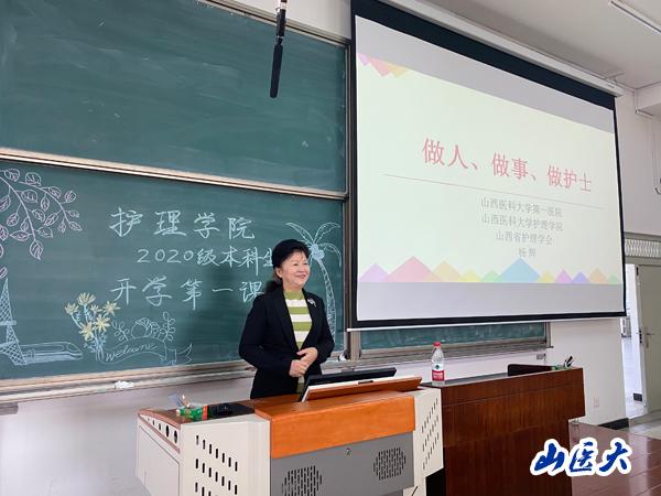 10月20日,学院院长杨辉、副院长商临萍为本科新生做了一堂别开生面的“开学第一课”。两位博士生导师分别以《做人、做事、做护士》《放飞人生》为题从学科与专业发展、职业使命、个人成长等角度,结合自己多年的护理职业生涯生动、具体地阐述了什么是护理、怎样成为一名合格的护士,如何在护理岗位上实现自我价值。榜样的力量、高大的格局、开阔的视野、真实的事例极大的激发了新生对护理专业的热爱和向往,增强了学习动力,坚定了专业信念。