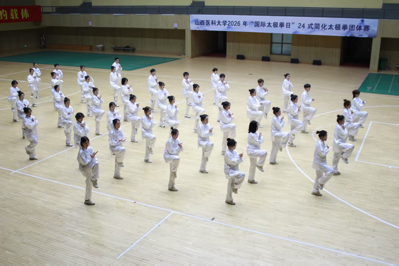 3月21日下午,山西医科大学2026年“国际太极拳日”24式简化太极拳团体赛在中都校区体育馆顺利举办,我院派出师生共50人参赛。