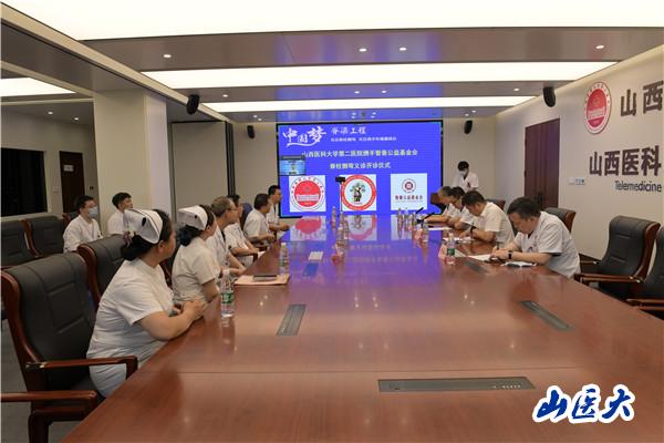 在开诊仪式上,智善公益基金会秘书长苗强通过线上视频连线致辞。山西省医学会骨科分会主任委员、第二医院院长赵斌教授作讲话。第二医院骨科主任冯毅致辞。第二医院骨科脊柱二病区主任赵胜教授主持开诊仪式。