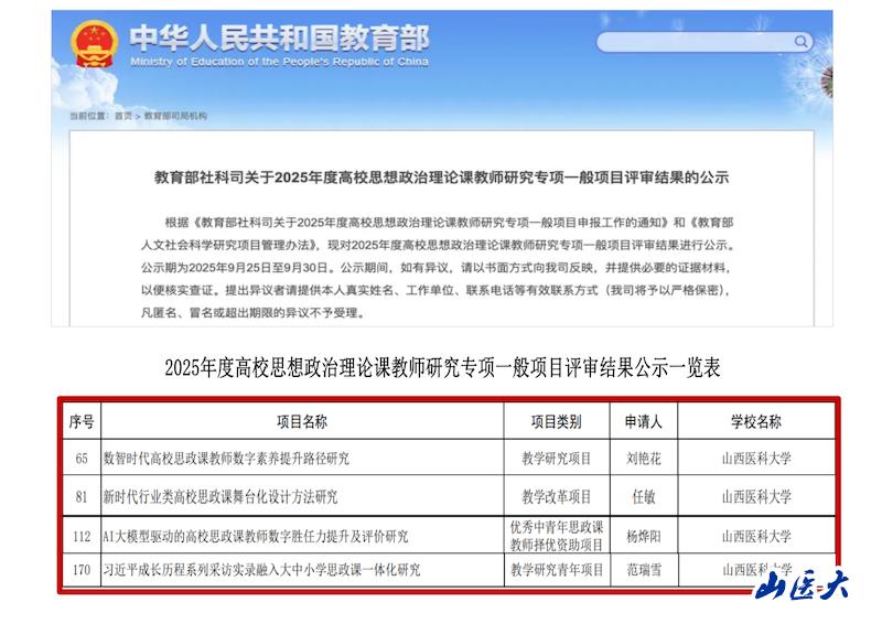 喜讯!我校在2025年度教育部高校思政理论课教师研究专项立项中取得佳绩