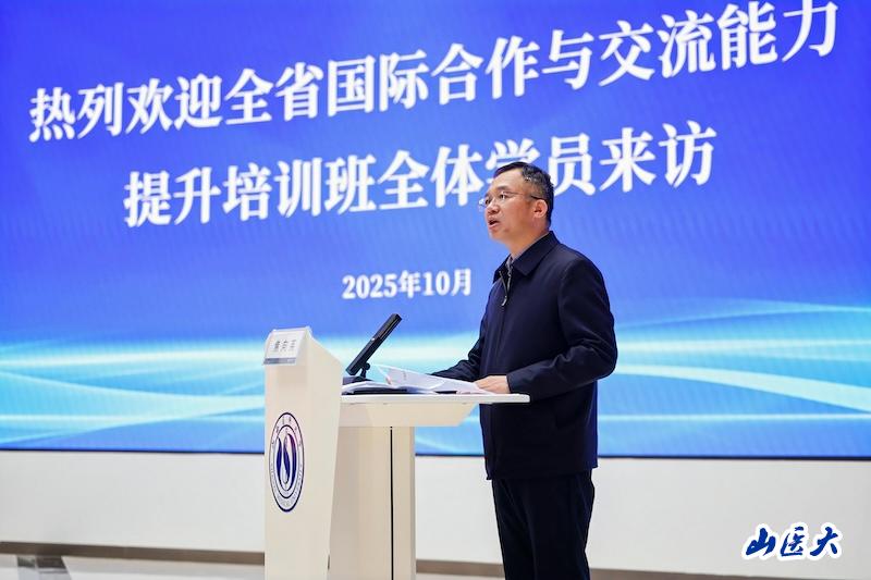 焦向英首先对培训班学员的到来表示热烈欢迎。他指出,当前全球教育合作进入新阶段,国际化医学人才培养是教育高质量发展的必然要求。学校将以此次交流为契机,在省教育厅指导下,与全省兄弟院校共享国际化资源、共探合作新模式、共解发展新难题,将思想共识转化为实际行动,共同推动山西教育对外开放迈向新台阶。