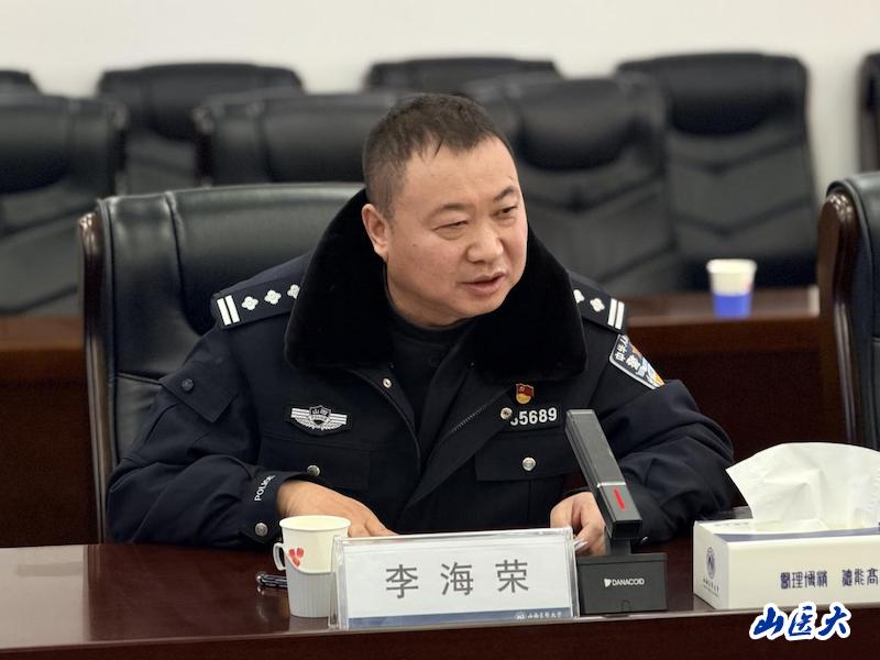 座谈会上,焦向英首先对李海荣一行的到来表示热烈欢迎,向分局长期以来对学校安全稳定工作的关心与支持表示衷心感谢。他介绍了驻校警务站自建设以来,韩风山警官始终坚守岗位、认真履职,在维护校园治安秩序、防范化解风险、处置突发事件、服务师生方面发挥了重要作用,是我校平安建设的坚强后盾和忠诚卫士。他表示,校园安全是高校高质量发展的基石,期待以此次调研为契机,进一步加强与高校分局的沟通协作。