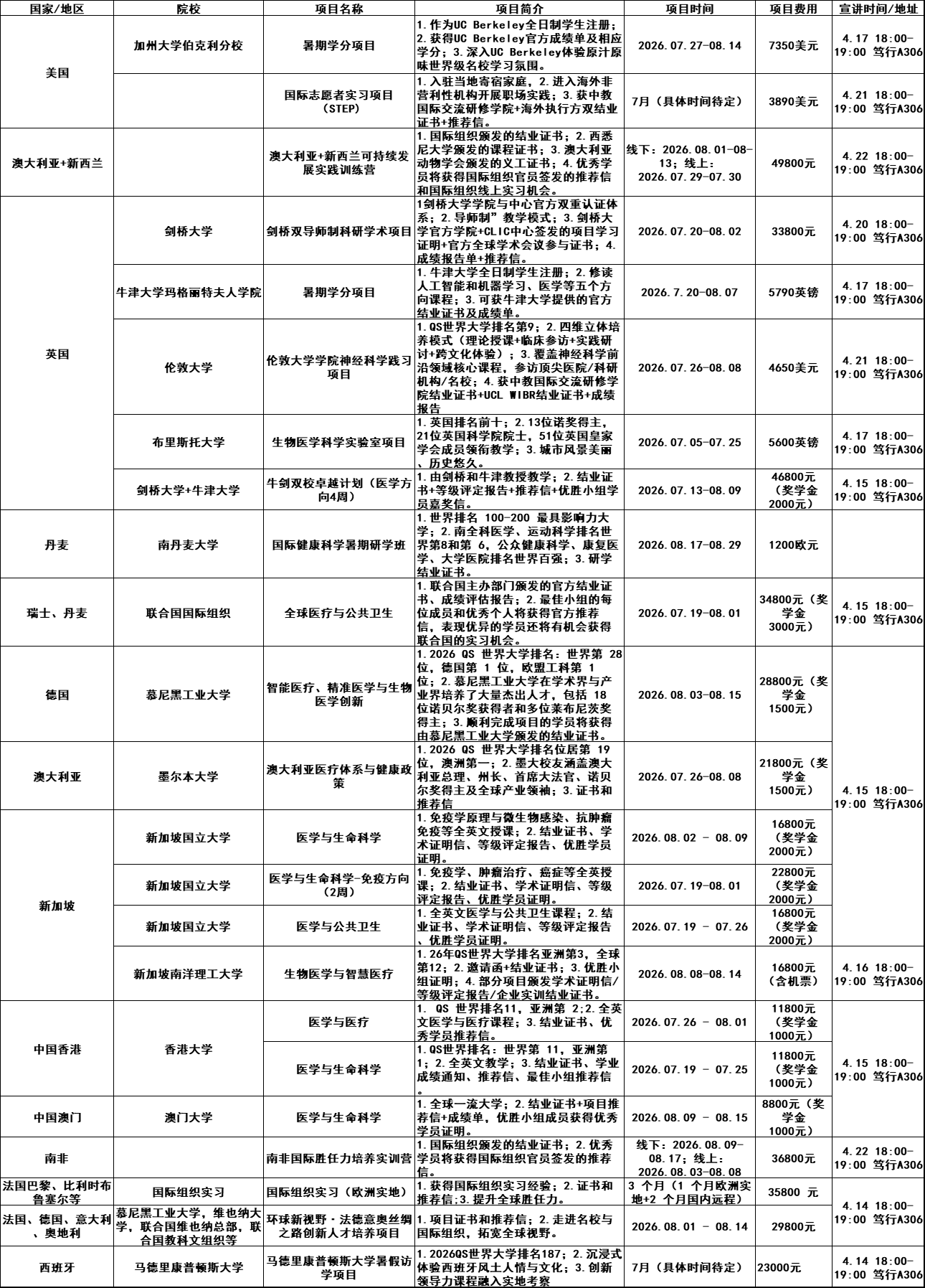 为深入推进人才培养模式改革,加快培养国际化高素质人才,根据学校相关政策,现将报名2026年寒假出国(境)短期线下访学项目通知如下: