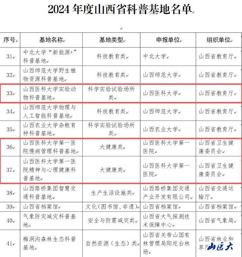喜讯!我校新获批“实验动物科普基地”“慢病管理科普基地”和“精神与心理健康科普基地”三个“山西省科普基地”