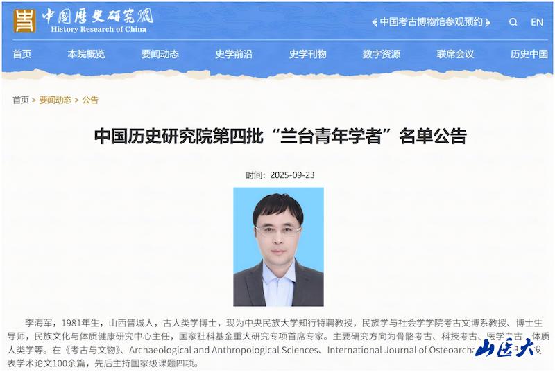 近日,中国历史研究院第四批“兰台青年学者”名单公布,我校公共卫生学院1999级校友、中央民族大学民族学与社会学学院考古文博系李海军教授成功入选。