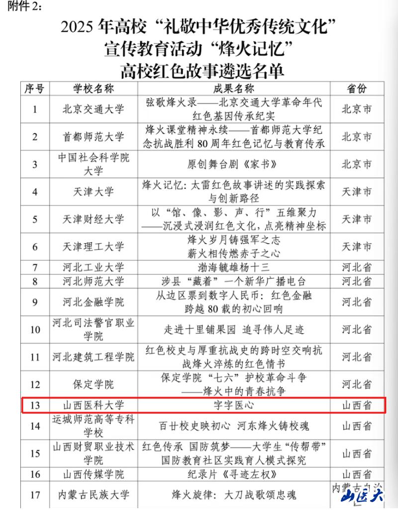 我校作品入选教育部2025年高校“礼敬中华优秀传统文化”宣传教育活动“烽火记忆”高校红色故事遴选名单