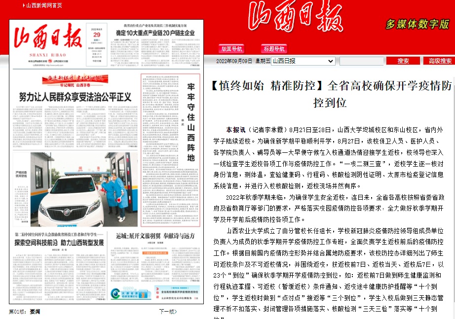 山西日报︱全省高校确保开学疫情防控到位