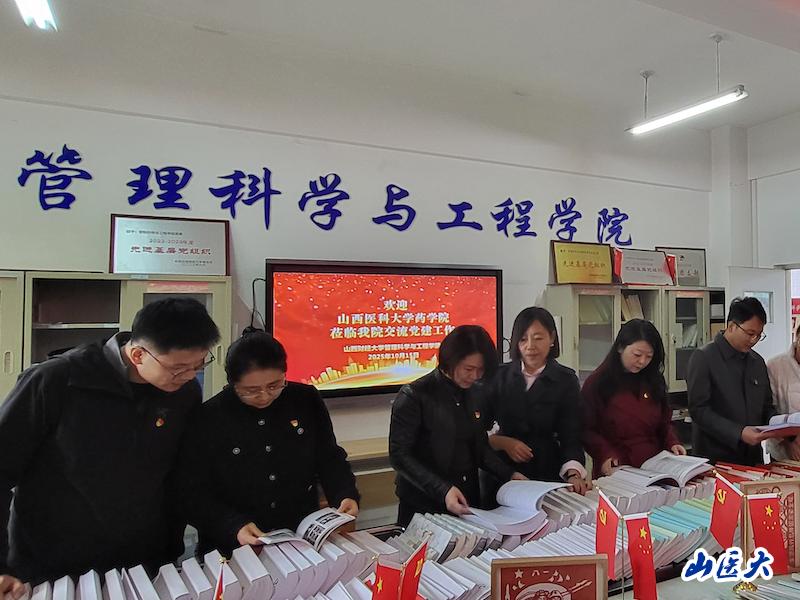 为进一步推进党建工作规范提升专项行动提质增效,10月15日上午,我校药学院党委书记李薇、副书记童玲带领学院党支部书记一行9人,赴“全国党建工作标杆院系”山西财经大学管理科学与工程学院开展党建工作专题学习交流活动。