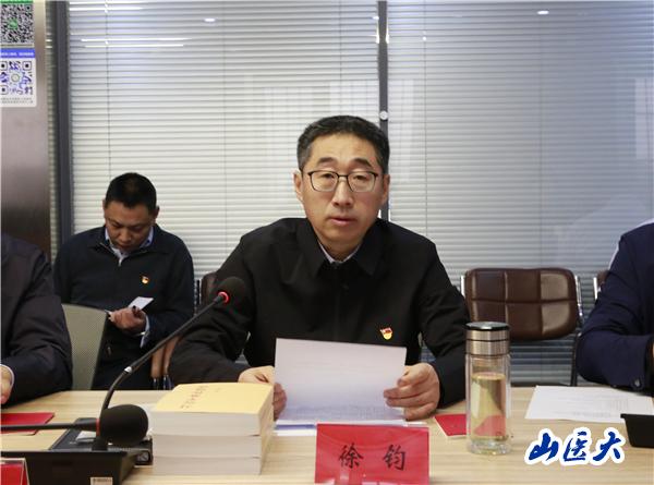 徐钧在动员讲话中指出,开展学习贯彻习近平新时代中国特色社会主义思想主题教育,是贯彻落实党的二十大精神的重大举措。组织开展读书班,是这次主题教育的规定动作,也是提升党员干部履职担当能力的务实举措。院领导班子成员要提高政治站位,端正学习态度,严守学习纪律,坚持读原著、学原文、悟原理,做好标杆表率,确保读书班学习取得实效。一要深学细悟,做忠诚担当的标杆。要坚持系统学习、深入学习,逐篇逐句学,先学一步、学深一步,吃透精神实质、把握核心要义;要坚持以上率下,推动全院党员干部更深领悟“两个确立”的决定性意义,更实把握党中央提出“三个务必”的政治深意、政治内涵,更加自觉做到“两个维护”,脚踏实地、团结实干,奋力开创医院各项工作新局面。二要学用相长,做能力提升的标杆。要坚持理论联系实际,在武装头脑、指导实践、推动工作上下功夫,在落实部署、见诸行动上取得实效。要以学正风、以学促干,带头扑下身子、沉到一线,通过走访、调研、座谈、探讨等方式,真正把医院存在的问题搞清搞透,谋实思路、做实方案、抓实工作。要着力解决人民群众急难愁盼问题,围绕“看病难、看病贵”,坚持深化改革,提升健康服务能力,让优质医疗服务惠及更多群众。三要破旧立新,做推动发展的标杆。要深刻把握新时代我国社会主要矛盾在卫生健康领域的具体表现,精准对接人民健康需求,抓重点、补短板、强弱项,以国家三级公立医院绩效考核指标为引导,不断引进高端人才服务医院整体建设,大力推进学科建设实现医院整体提质增效,打造山西省首家多中心、强特色的智慧绿色医院,以钉钉子精神做实做细做好医院各项工作,努力在全方位推动医院高质量发展上不断取得新突破。