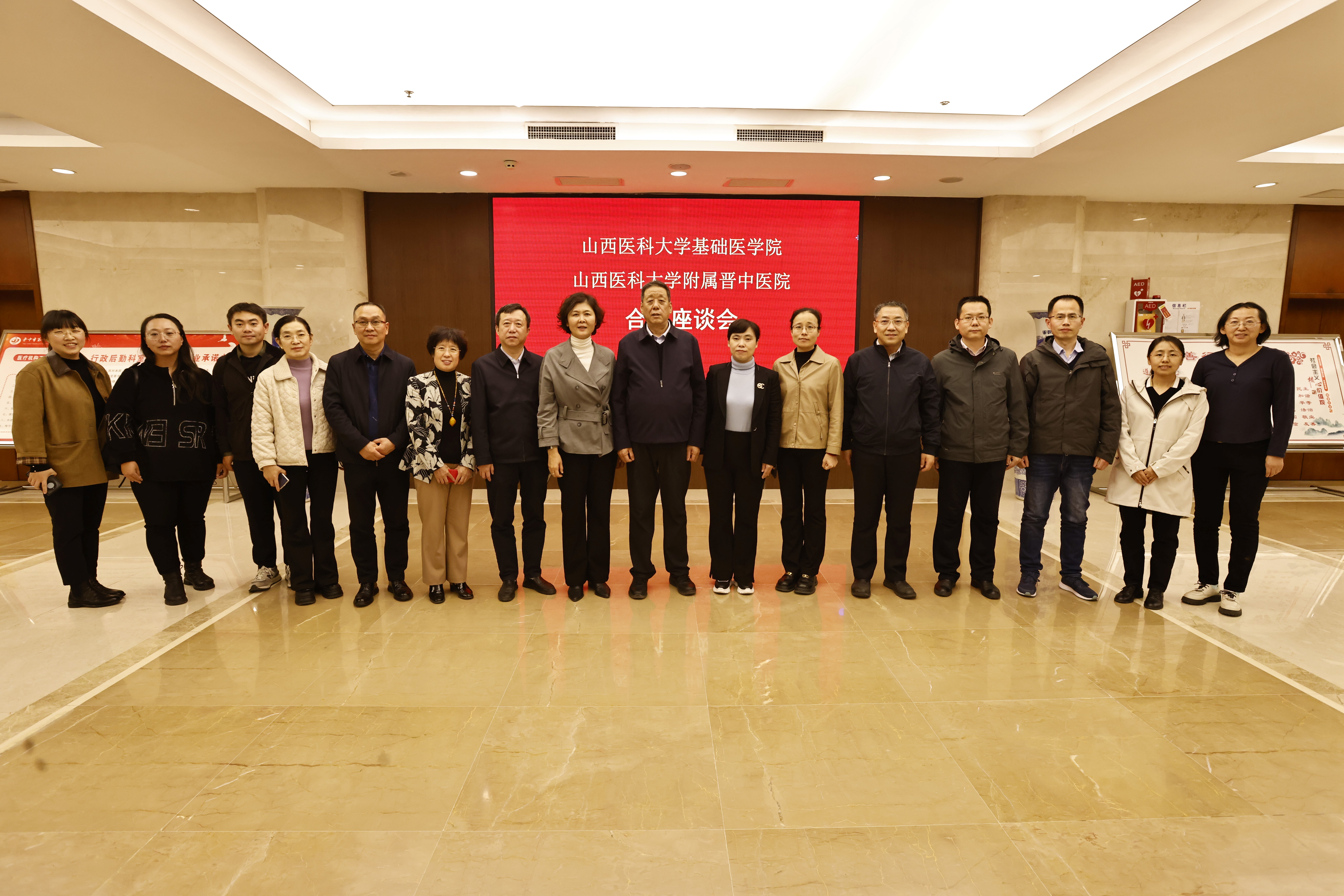 2025年11月3日,基础医学院与附属晋中医院合作座谈会在晋中医院科研楼六层党员活动室举行。座谈会旨在推动基础医学与临床实践的深度融合,促进科研合作与学科共建。基础医学院院长陆利教授、副院长王晓晖教授、宋慧芳教授以及学院多位与附属晋中医院重点科室存在科研契合的校内机构负责人及科研骨干教师共同参与交流。