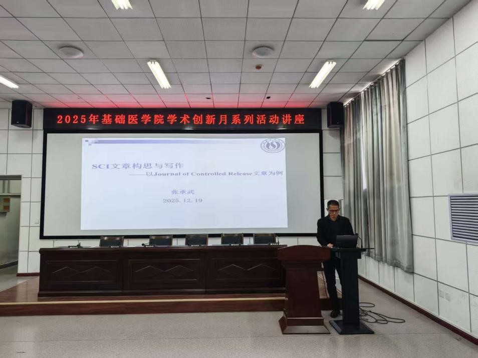 12月19日,基础医学院第二届“研究生学术创新月系列活动”系列讲座在中都校区逸夫楼一层报告厅圆满举行。基础医学院2024级、2025级全体研究生、博士生及部分教师参加活动。基础医学院副院长张宇主持讲座。