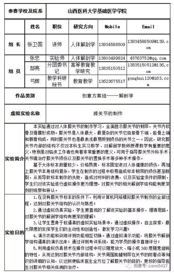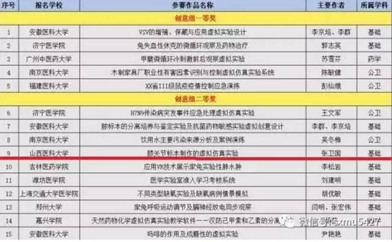 其中,创意作品组共产生一等奖作品5项、二等奖作品10项、三等奖作品15项。我院解剖教研室张卫国老师牵头设计的参赛作品《膝关节标本制作的虚拟仿真实验》荣获创意作品二等奖。