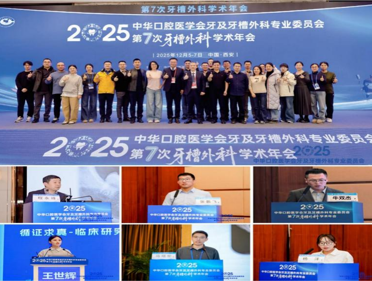 12月5日至7日,由中华口腔医学会牙及牙槽外科专业委员会主办的第7次全国牙槽外科学术年会暨换届大会在西安索菲特人民大厦会展中心隆重召开。本次盛会汇聚全国1100余名口腔医学领域顶尖专家学者,以“聚焦临床难题、共绘学科蓝图”为核心,围绕牙及牙槽外科前沿技术、机制研究与临床应用展开深度研讨,成为行业学术交流的重要标杆。