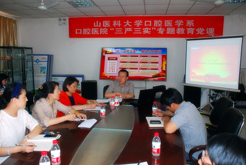 按照校党委《关于开展“三严三实”专题教育的实施方案》的要求和部署,6月5日下午,我校纪检顾昭明书记应邀为口腔医学系(口腔医院)全体中层以上干部作了题为《三严三实——修身做人与从政成事的永恒准则》的专题党课,系(院)党总支书记罗晓晋主持会议。