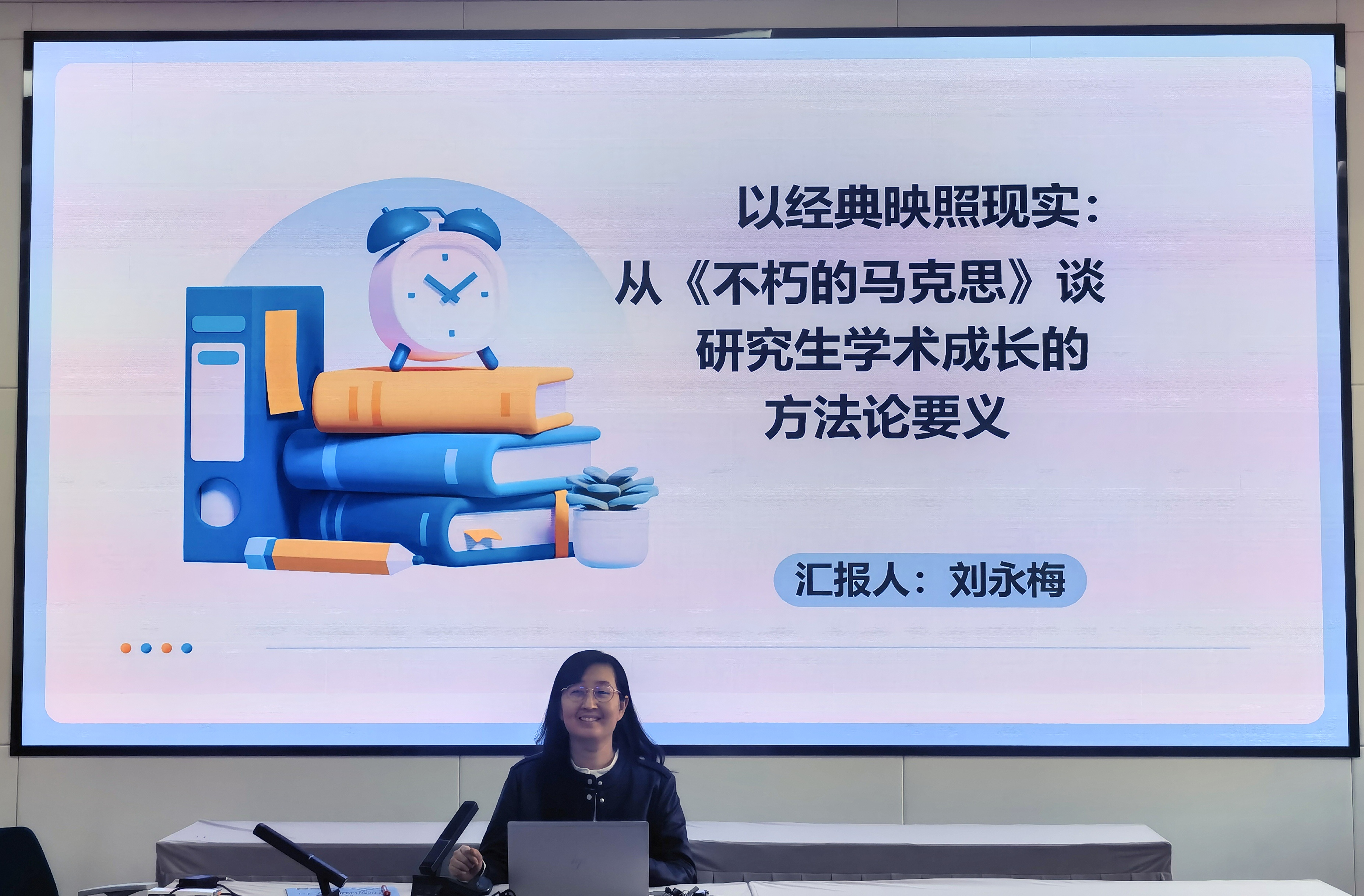 刘永梅以电视纪录片《不朽的马克思》为视角讲授了研究生学术成长、马克思学术实践的核心特质与思维逻辑、研究生学术成长的困境和思维要义等方面内容。刘永梅指出,马克思的学术品格是我们学术成长的“精神基石”;马克思的思维工具是学术分析的“核心框架”;马克思的研究范式是学术产出的“实践路径”。此外,刘永梅还根据研究生学术成长的困境,从不同维度为研究生的学术成长提供了方法论。
