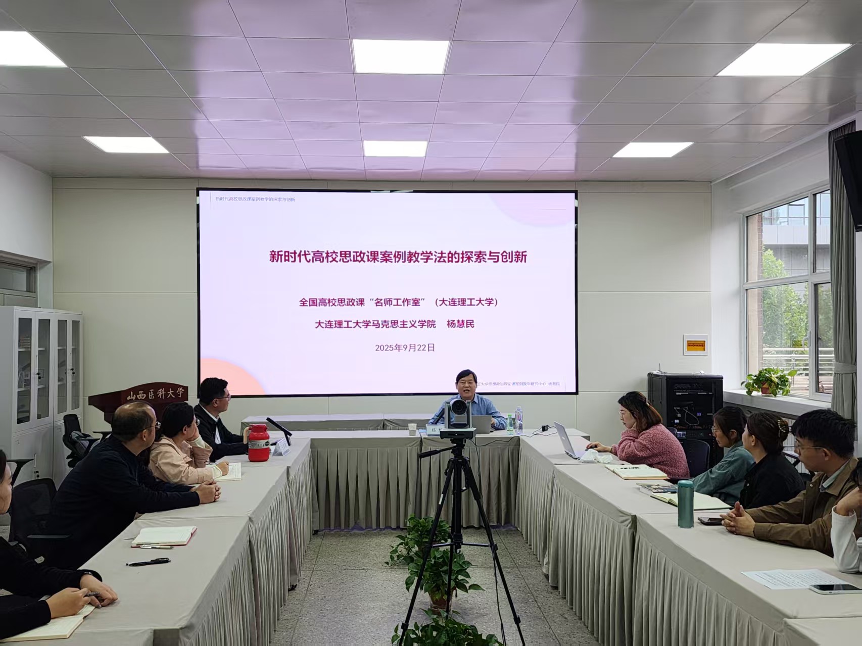 9 月 21 日,由学校宣传部、山西省高校思政课“王绍源名师工作室”联合主办的“思政名师工作坊”第5期在至善A203举行。本期特邀大连理工大学杨慧民教授作了题为“新时代高校思政课案例教学的探索与创新”的专题讲座。