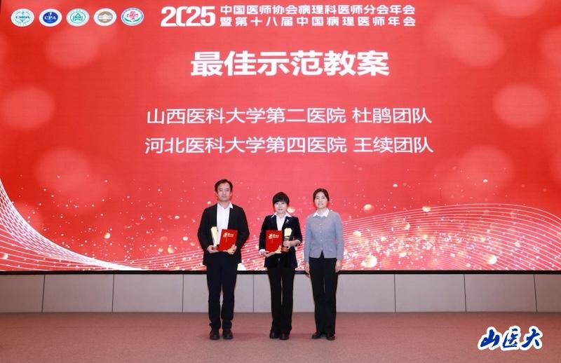 在12月12日举办的临床病理科专业基地“教学阅片”示范交流活动中,来自全国17家国家级重点病理住培基地的师生同台竞技。我校附属第二医院病理科杜鹃指导医师、王泽坤主阅医师以及张飞、刘姝彤住院医师凭借精心打磨的课程与教案脱颖而出,一举斩获“最佳示范教案”“教学阅片潜力示范精品课程”两项荣誉。值得一提的是,在专家点评环节,我校附属第二医院病理科王晨主任对各教学阅片参赛团队的表现进行了精准独到、兼具指导性与启发性的精彩点评,其深厚的学术造诣和敏锐的教学洞察力赢得了在场专家及同行的高度赞誉。