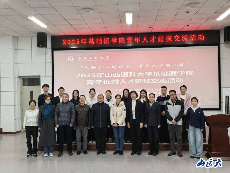 11月25-26日,由党委人才工作部和基础医学院联合举办的“人到山西好风光 青年才俊聚山医”--基础医学院优秀青年人才延揽交流活动在中都校区举行。学校党委人才工作部、基础医学院、校内科研机构负责人,师生代表和来自武汉大学、中国科学院大学、南开大学等6所国内顶尖高校优秀青年人才参加活动。基础医学院副院长宋慧芳主持交流活动。