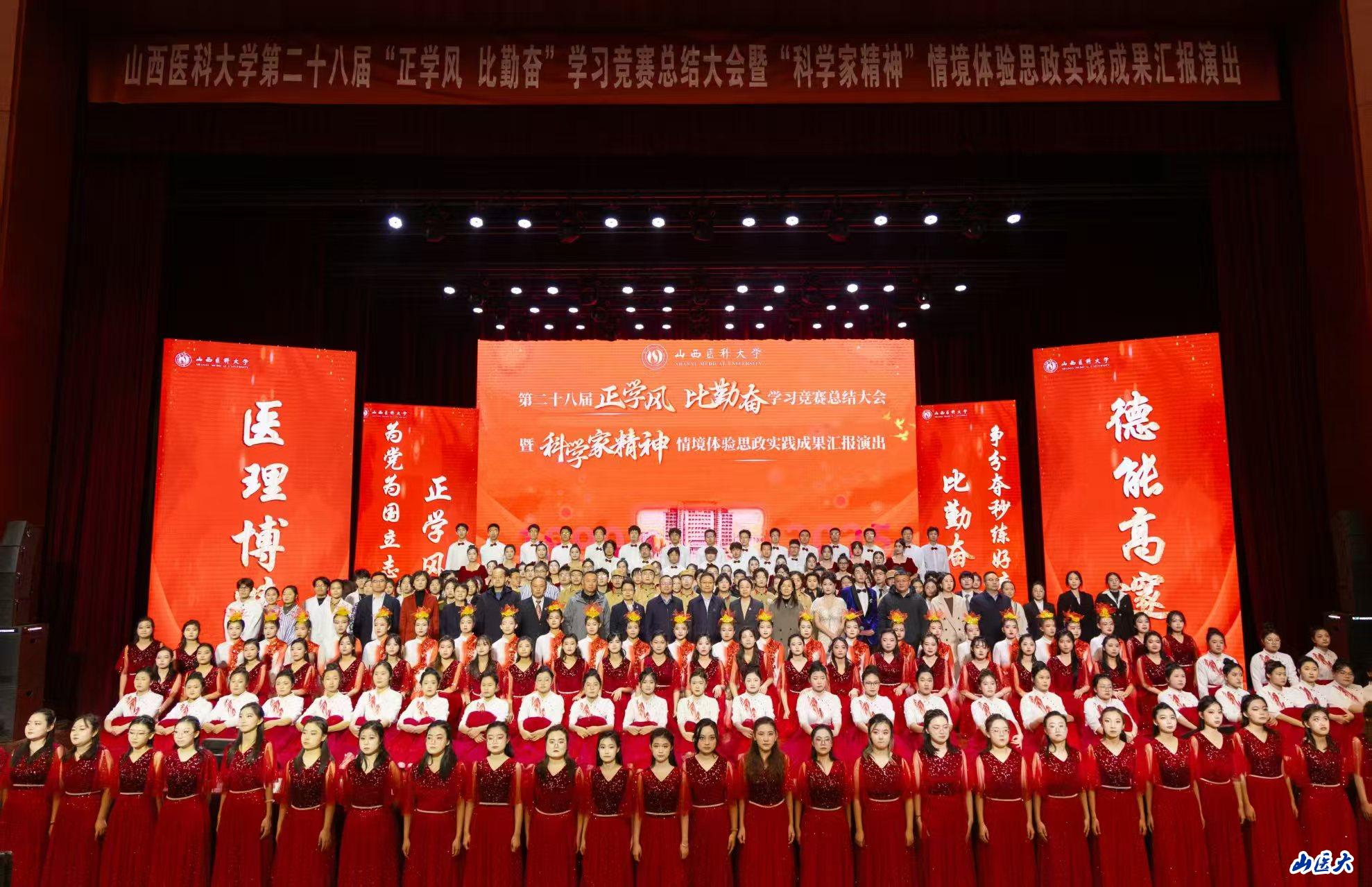 12月19日晚,我校第二十八届“正学风 比勤奋”学习竞赛总结大会暨科学家精神情景思政实践成果汇报演出在中都校区大学生剧场举行。校党委书记王军,校党委副书记彭月兰,校党委常委、副校长焦向英、武志芳出席活动。首届“正学风 比勤奋”学习竞赛获奖者、优秀校友代表、山西药科职业学院党委书记张轩萍受邀参加活动。学校部分职能部门负责人、各学院师生代表齐聚一堂,共同见证这场融学风建设成果展示与思政教育实践于一体的盛会。