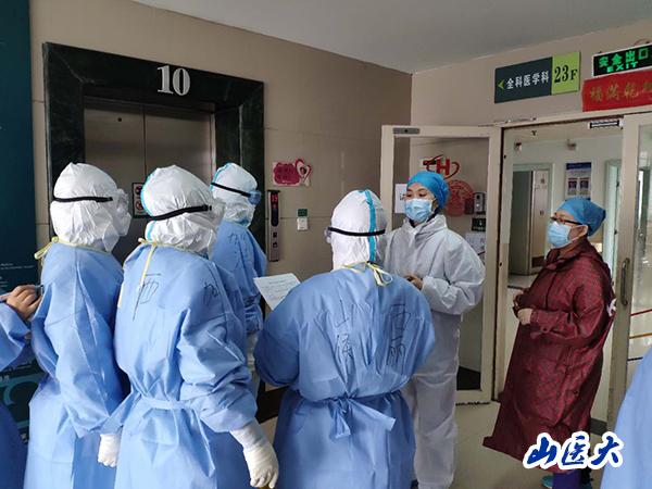 来到武汉,张惠蓉接到的第一项任务就是做好岗前培训。穿脱防护服与全套防护用品对每一位前线医护人员都是一项非常重要的操作,事关生命安全。山西第十二批支援湖北医疗队邀请国家卫健委、中南医院的专家以及前期支援湖北医疗队队员,对全体队员进行了防护培训。从实战出发,张惠蓉特别询问了培训专家遇到特殊情况的应急处理,如防护面罩破裂,意外摔倒,发生呕吐、晕厥、穿脱顺序错误后的补救措施等,然后带领全体队员苦练杀敌本领。