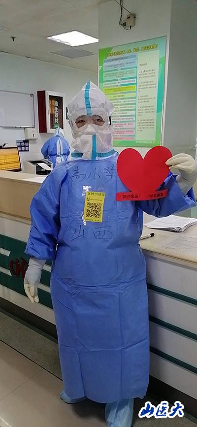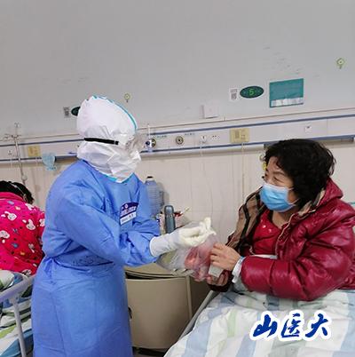 让患者惊喜的不仅仅是一个爱心沟通群,队员们还把妇联组织、社会团体、酒店给大家的过节慰问品拿出来,包成一份份礼包送给了他们,有水果、巧克力、酸奶、核桃、红枣、麦片等等。这是一份爱的传递,一份平安的分享。还有一张张自制的贺卡,写满了医护人员对患者的鼓励和期待,也写满患者对医护人员的感谢和祝福,在病房的墙上组成一个心型图案!患者们说,“今天是女神节,我们接到了女神送的礼物!感谢山西的白衣天使,也祝她们节日快乐!”