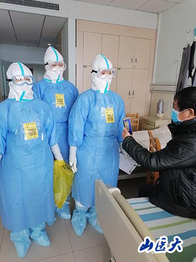 36床张大爷是一位聋哑人,因识字少、沟通困难,情绪一度非常焦躁,护士长微信联系其女儿,由其女儿与父亲沟通,进行安抚,效果较好。今日张大爷要出院了,同样是微信提前与其女儿联络,告诉她要关注大爷的心理需求,督促她与隔离点联系帮助大爷尽快适应新环境,其女儿对医疗队服务非常满意并表示感谢。