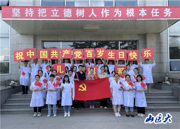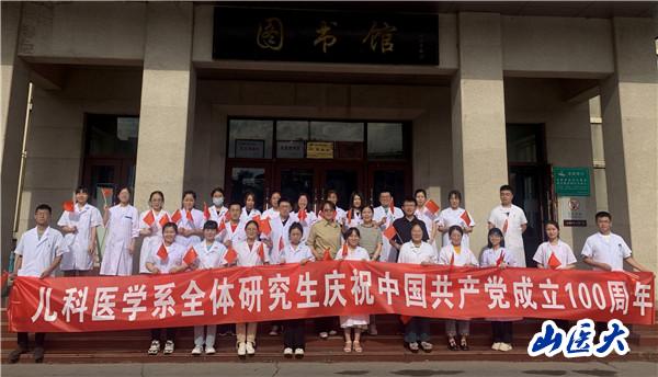 为迎接中国共产党成立100周年,扎实推进党史学习教育,深情回顾党的百年奋斗史,6月18日下午,儿科医学系组织全体研究生迎泽校区图书馆前开展“唱歌诵党恩”主题团日活动。同学们手握国旗,簇拥着鲜艳的党旗,用最真诚的歌声,唱出了对党对祖国的热爱。儿科医学系党总支书记华楠、研究生辅导员阎冲、张晓林参加了此次活动。
