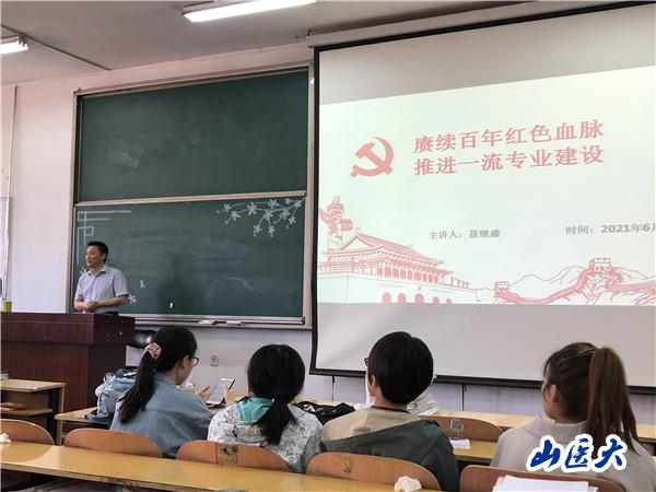 6月10日上午,公共卫生学院副院长聂继盛在迎泽校区B座十五教为2017级预防医学学生讲授“赓续百年红色血脉,推进一流专业建设”专题党课。