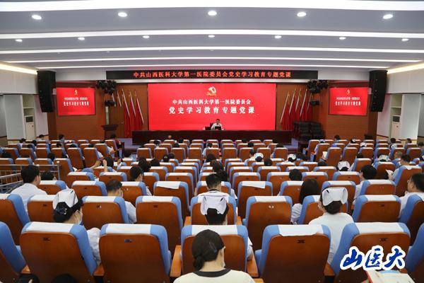 在庆祝中国共产党成立100周年之际,按照党史学习教育的有关部署要求,6月23日,校党委常委、第一医院党委书记刘春以“学习贯彻党的章程”为题讲授党史学习教育专题党课。全院各党支部书记、科主任、科护士长以及机关全体党员共150余人参加了学习。