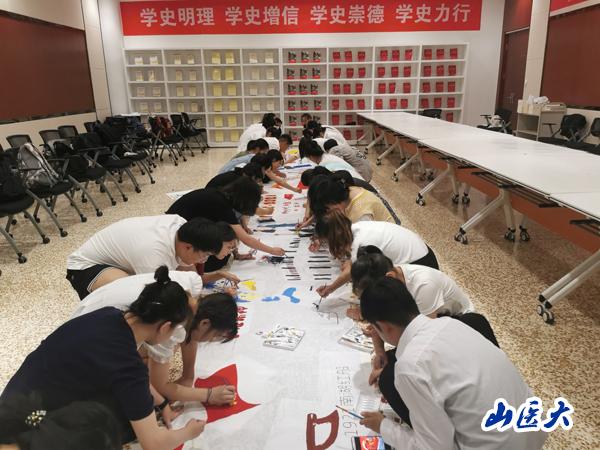 在庆祝中国共产党成立100周年之际,为回顾党的奋斗历史,讴歌党的光辉历程,进一步激励广大党员坚定理想信念、激发基层党组织活力,6月28日,我校管理学院学生第二党支部在图书馆党史学习教育空间C102开展“巨幅绘画献礼百年华诞”主题绘画活动。