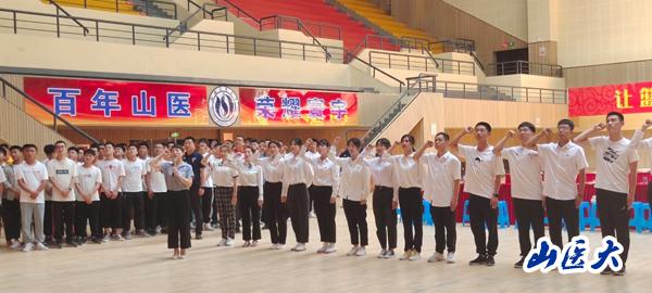 2017级团支部书记王晓天带领全体学生高颂毕业生誓言。要铭记山医校训,谨遵师长教诲,珍惜母校荣誉。顽强拼搏,勇攀高峰,以梦为马,不负韶华。在日后的发展中,我们将积极发扬“求实精进、坚韧弘毅”的山医精神,使命在肩、奋斗有我!铮铮誓言铭于心,初心使命化于行。