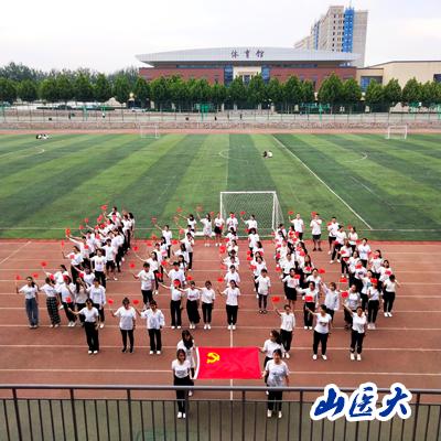 学院本科生与研究生学生支部近百名学生党员、入党积极分子。在分团委副书记李颖老师的组织下,同学们在操场、图书馆、校园内摆出了图案“100”、“党徽”以及和党旗的合影造型,整齐嘹亮、铿锵有力的口号“强国有我、请党放心”回荡在校园上空,响亮有力,振奋人心!