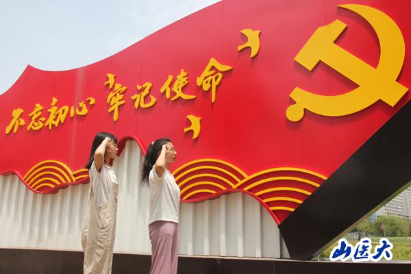2019级生物制药专业团总支袁沂同学说:“我与党旗合个影。当我们站在鲜红的党旗前庄严地举起右手,讲出那一段入党誓词,就代表了我们将用一生去践行不忘初心,一心向党的铮铮誓言。”2019级研究生团总支王雪薇同学说:“我与党旗合个影。走的再远也不能忘记走过的路,盛世华诞、青春向党。 ”