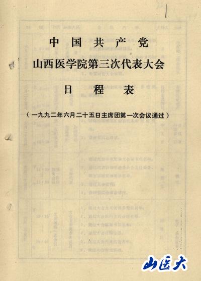 (山西医学院第三次党代会日程表)