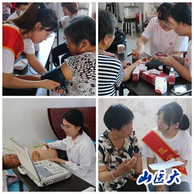 7月14日,实践队在南马村村委会开展了义务体检志愿服务活动。队员们分成6个小组,分别为村民们测量身高体重,进行嗅觉检查、视力检查、色弱排查,测量血糖血压。特别值得一提的是,实践队专门从学校附属医院申请了便携式超声仪,由研究生队员为村民们进行B超检查。三伏天里骄阳似火,但队员们为人民服务的热情和实践的兴致却都丝毫不减。一天的忙碌过后,志愿者们以温和友好的服务态度、专业负责的工作技能赢得了村民们的一致好评。