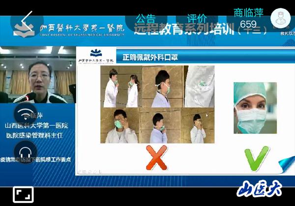 此次培训安排了回放,大家可随时通过链接https://www.xinyixy.com/sxykdxdyLogin下载远程教育平台登录,查找“山西医科大学第一医院《疫情疫情常态防控下的院感工作要点》”观看。