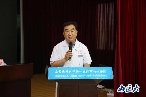 万柏林区医疗集团、第一医院万柏林分院党委书记郝拽生作表态发言,表示要讲政治、讲奉献、讲团结、讲纪律,全力推动分院高质量发展。