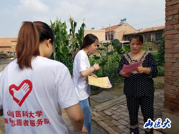 志愿服务队成员们以小组为单位,深入平舒乡上峪村,热情走访了平舒乡上峪村每一户村民,对村民们家庭健康情况进行了解,通过宣传讲解和调查问卷的方式,对村民们进行常见病相关问题宣讲、儿童健康保健及传染病预防知识讲解。村民们对队员们的到来纷纷表示欢迎,争相邀请队员们到家里,耐心听取队员们的讲解,积极咨询相关疾病知识。