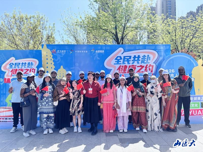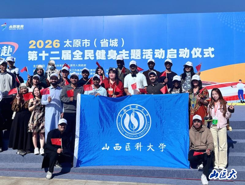 On the morning of April 18, at the invitation of the Foreign Affairs Office of Taiyuan, international students of our university attended the launch ceremony of the 2026 Taiyuan (Provincial Capital) 12th National Fitness Theme Activity, co-hosted by the Taiyuan Municipal Party Committee, Municipal Sports Bureau, and Municipal Federation of Trade Unions. They gathered at the Celebration Square of Jinyang Lake Park with teams from municipal direct agencies and relevant units, practicing the national fitness concept through brisk walking and conveying the vibrant spirit of the city.
