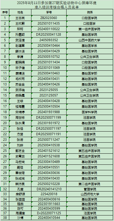 以下培训合格人员需在一个月内进入屏障开展实验,逾期未进者须重新接受培训和考核,望周知!