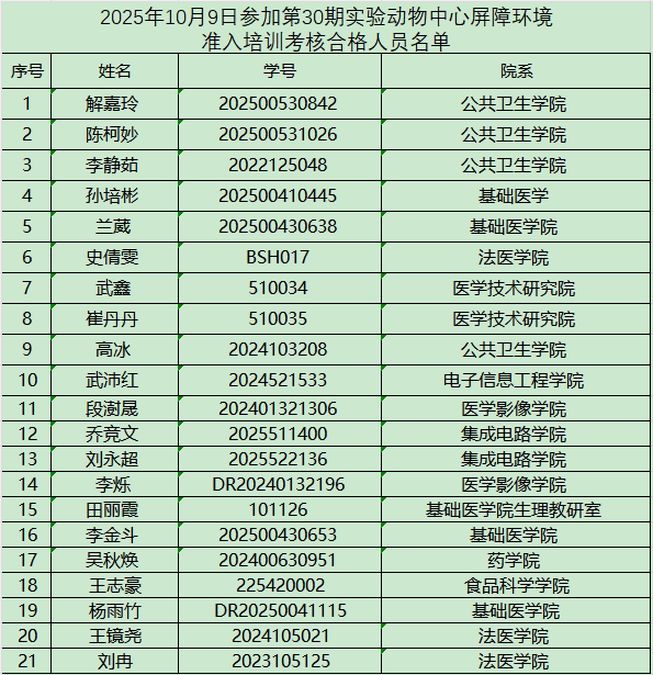 以下培训合格人员需在一个月内进入屏障开展实验,逾期未进者须重新接受培训和考核,望周知!