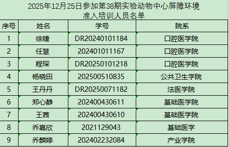 请以下参培人员于2025年12月25日下午14:30到动物中心三层多功能会议室参加培训和考试!
