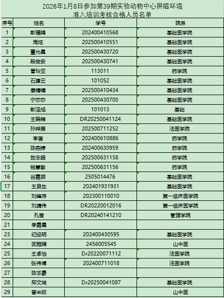 以下培训合格人员需在一个月内进入屏障开展实验,逾期未进者须重新接受培训和考核,望周知!