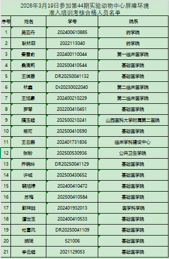以下培训合格人员需在一个月内进入屏障开展实验,逾期未进者须重新接受培训和考核,望周知!