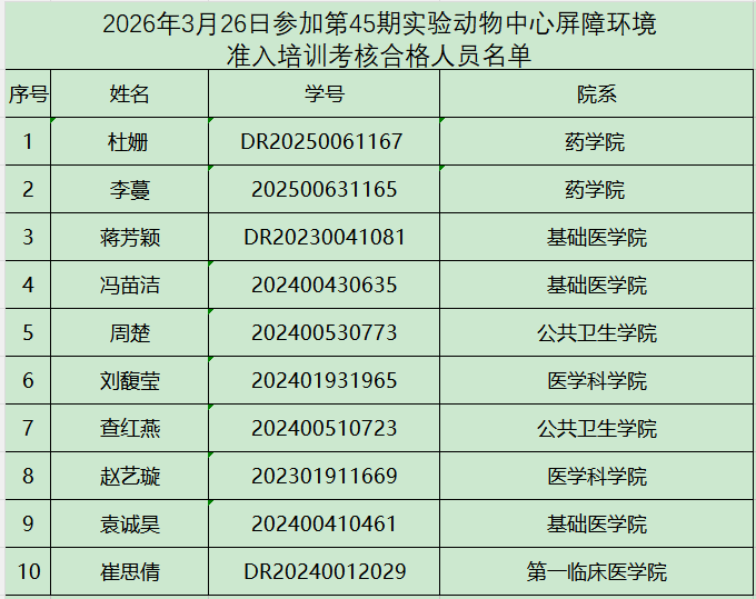 以下培训合格人员需在一个月内进入屏障开展实验,逾期未进者须重新接受培训考核,望周知!